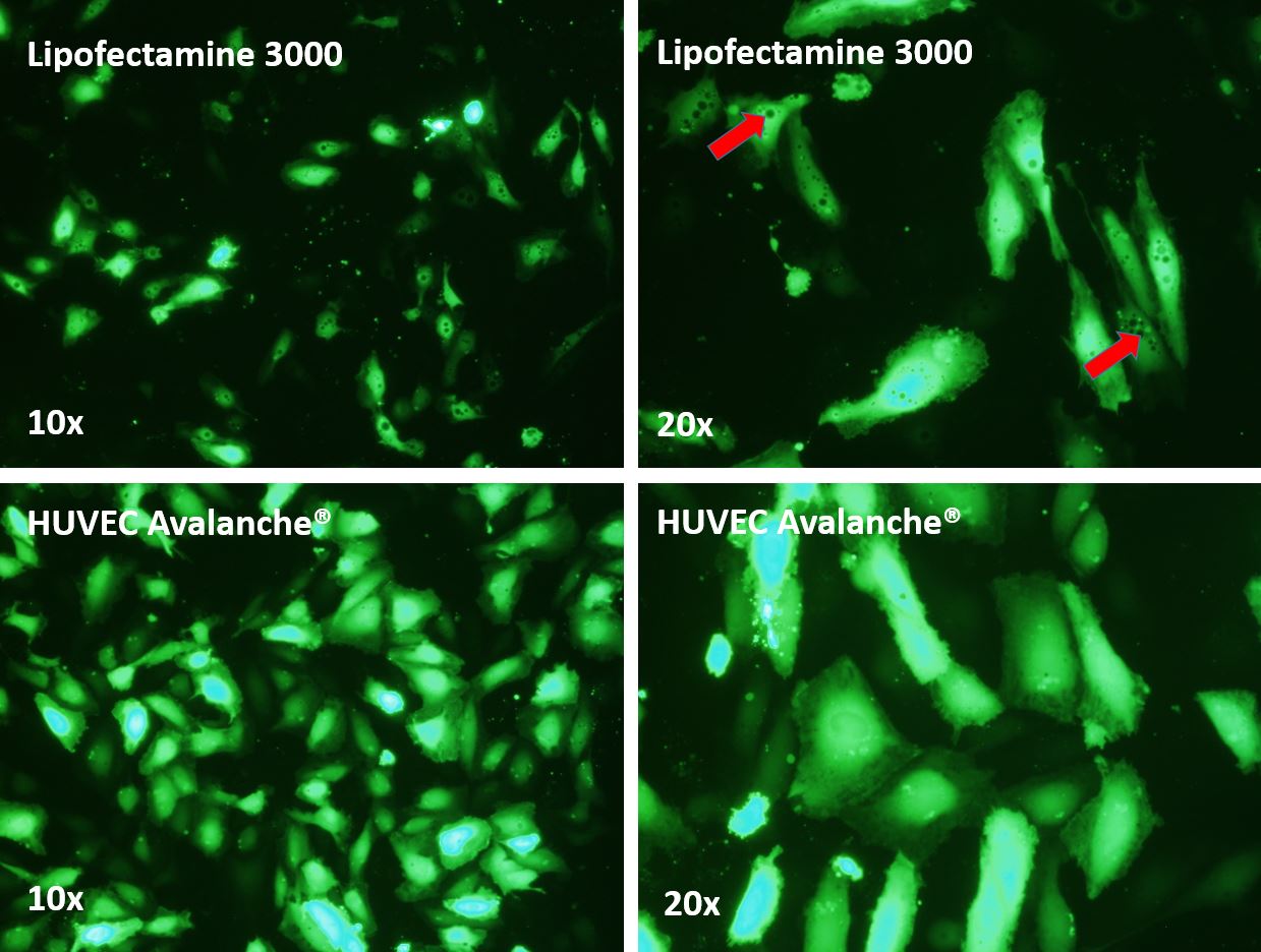 Human Umbilical Vein Endothelial Cell (HUVEC) Avalanche® Transfection Reagent can also be used on the following cells with high transfection efficiencies.
